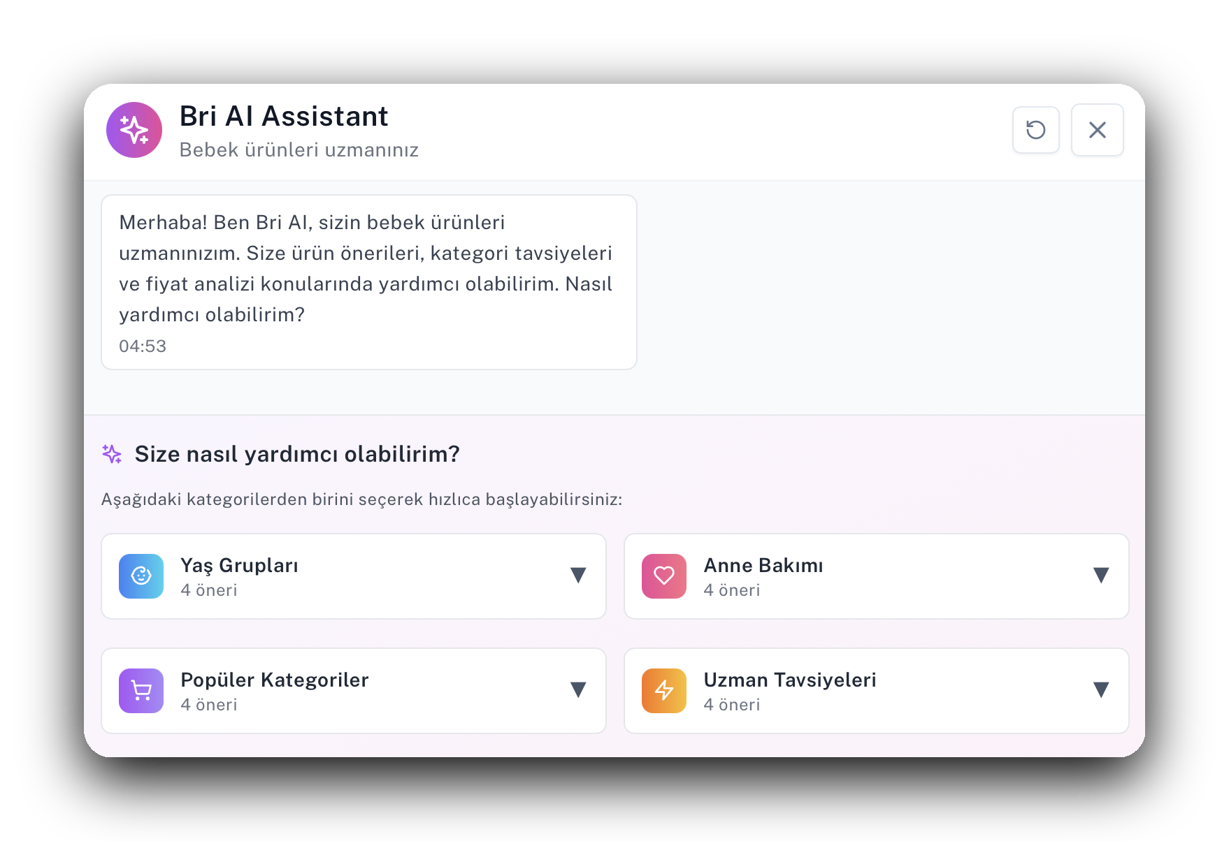 BRI AI Asistan, tüm sipariş ve ürün verilerini analiz eder; ürün adını ve görselini geliştirmek için sana akıllı öneriler sunar.