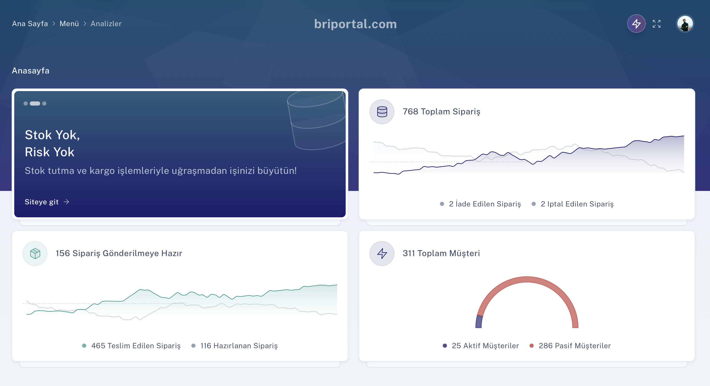 Bri.com.tr, gerçek zamanlı finansal panelleriyle işletmenizin finansal durumunu net bir şekilde görmenizi sağlar.